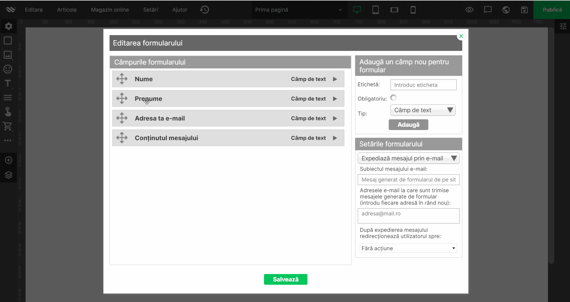 Implementăm modificări mici ale programului, pentru creare site gratuit - WebWave, în fiecare zi. Majoritatea modificărilor le implementăm de câteva ori pe săptămână. Dacă ai vreo idee despre o funcție nouă, scrie-ne aici.