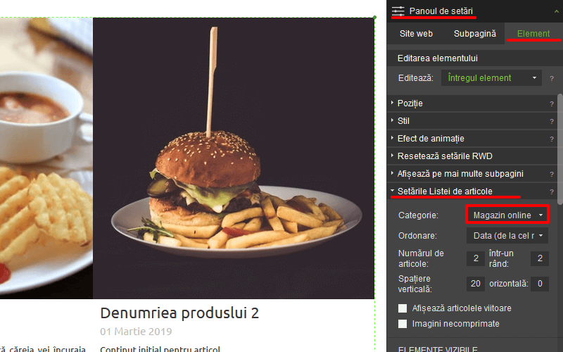 Datorită modificărilor implementate în schema articolelor poți combina funcționalitățile listei de articole și a magazinului online.