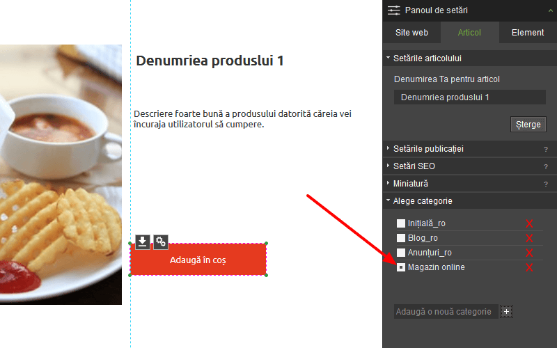 Această noutate permite adăugarea la schema articolelor a butonului ”Adaugă în coș” și editarea produsului în fiecare articol nou, creat în baza acelui șablon.